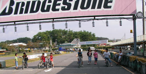 それと、後楽園では会場スペースを確保して頂いた吉田翔貴君ファミリーもありがとうございました。植松ファミリーの美樹ちゃんも雨でマシンが不調のため、泣きながらのレースとなりましたが、がんばってました。みんな、雨の上がったレース後はレース結果を忘れて無邪気にキッズ同士で遊んで、何ともほほえましい光景でした。いろいろあそびましたね〜!モトクロス場内にあるカートコースで、キッズライダーによる自転車でのサーキットレースや、テニスコートでの自転車レースも行いました。